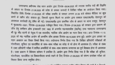 देहरादून। उत्तराखण्ड अधीनस्थ सेवा चयन आयोग ने 21 सितम्बर को आयोजित स्नातक स्तरीय भर्ती परीक्षा को निरस्त कर दिया है।…