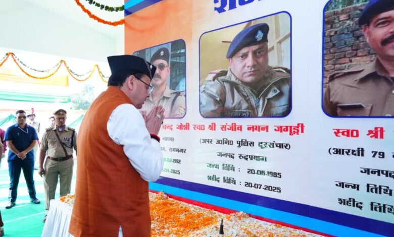 देहरादून। मुख्यमंत्री पुष्कर सिंह धामी ने मंगलवार को पुलिस लाइन्स, देहरादून में पुलिस स्मृति दिवस के अवसर पर आयोजित कार्यक्रम में प्रतिभाग किया। इस दौरान मुख्यमंत्री ने पुलिस एवं अर्द्ध सैन्य बलों के शहीदों को पुष्प चक्र अर्पित कर श्रद्धांजलि दी। मुख्यमंत्री ने शहीद पुलिस जवानों के परिजनों को भी सम्मानित किया।