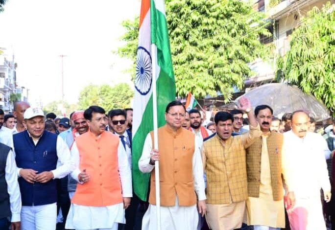 टनकपुर। मुख्यमंत्री पुष्कर सिंह धामी अपने एक दिवसीय चंपावत भ्रमण कार्यक्रम के तहत गुरुवार को टनकपुर पहुँचे। उन्होंने राष्ट्र की एकता और अखंडता के प्रतीक लौह पुरुष सरदार वल्लभभाई पटेल की 150वीं जयंती के अवसर पर आयोजित ‘एकता पदयात्रा’ में प्रतिभाग किया। यह पदयात्रा डिग्री कॉलेज टनकपुर से प्रारंभ होकर गांधी मैदान तक सम्पन्न हुई। मुख्यमंत्री ने पैदल चलकर जनसमूह को राष्ट्रीय एकता, अखंडता और स्वावलंबन का संदेश दिया।