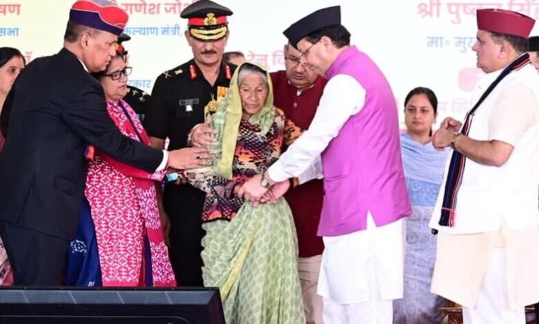 लैंसडाउन(पौड़ी गढ़वाल)। मुख्यमंत्री पुष्कर सिंह धामी ने रविवार को लैंसडाउन में आयोजित शहीद सम्मान समारोह लैंसडाउन की पावन धरती से शहीदों की अमर वीरगाथाओं और उनके सर्वोच्च बलिदान को नमन किया। मुख्यमंत्री ने शहीदों के परिजनों एवं आश्रितों को ताम्रपत्र और अंगवस्त्र भेंटकर सम्मानित किया। मुख्यमंत्री ने अमर शहीद गब्बर सिंह नेगी मेमोरियल में उनकी प्रतिमा पर पुष्पचक्र अर्पित कर श्रद्धांजलि दी। उन्होंने कहा वीर गब्बर सिंह नेगी जैसे अमर सपूतों के कारण ही आज देश सुरक्षित है।