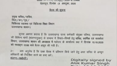 देहरादून। राज्य कर्मचारियों के विभिन्न लंबित प्रकरणों का लेकर सचिव (कार्मिक) शैलेश बगौली की अध्यक्षता में 15 अक्टूबर 2025 को…