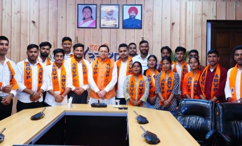 देहरादून। मुख्यमंत्री पुष्कर सिंह धामी से मंगलवार को अखिल भारतीय विद्यार्थी परिषद (ABVP) के देहरादून जनपद के विभिन्न महाविद्यालयों के विजयी प्रत्याशियों ने मुख्यमंत्री आवास में भेंट की। मुख्यमंत्री ने सभी प्रत्याशियों को शुभकामनाएं दी। उन्होंने कहा कि युवा ही देश और राज्य की प्रगति की असली शक्ति हैं और उनकी सक्रिय भागीदारी से समाज में सकारात्मक बदलाव लाया जा सकता है।