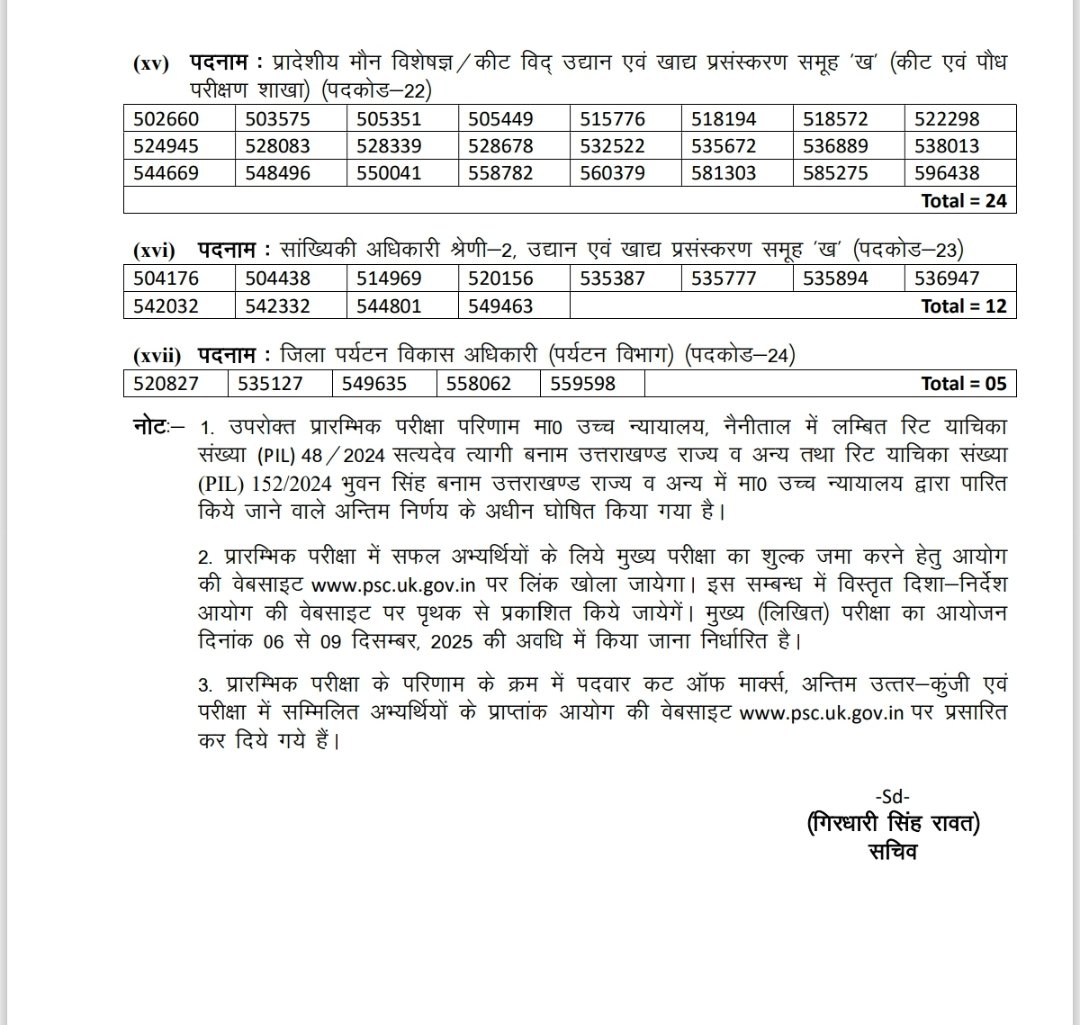 उत्तराखंड PCS प्री का रिजल्ट घोषित